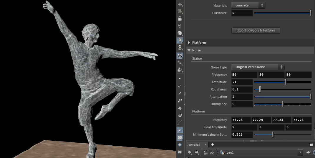 Noise can be added to create a more defined shape that better fits the desired statue style.